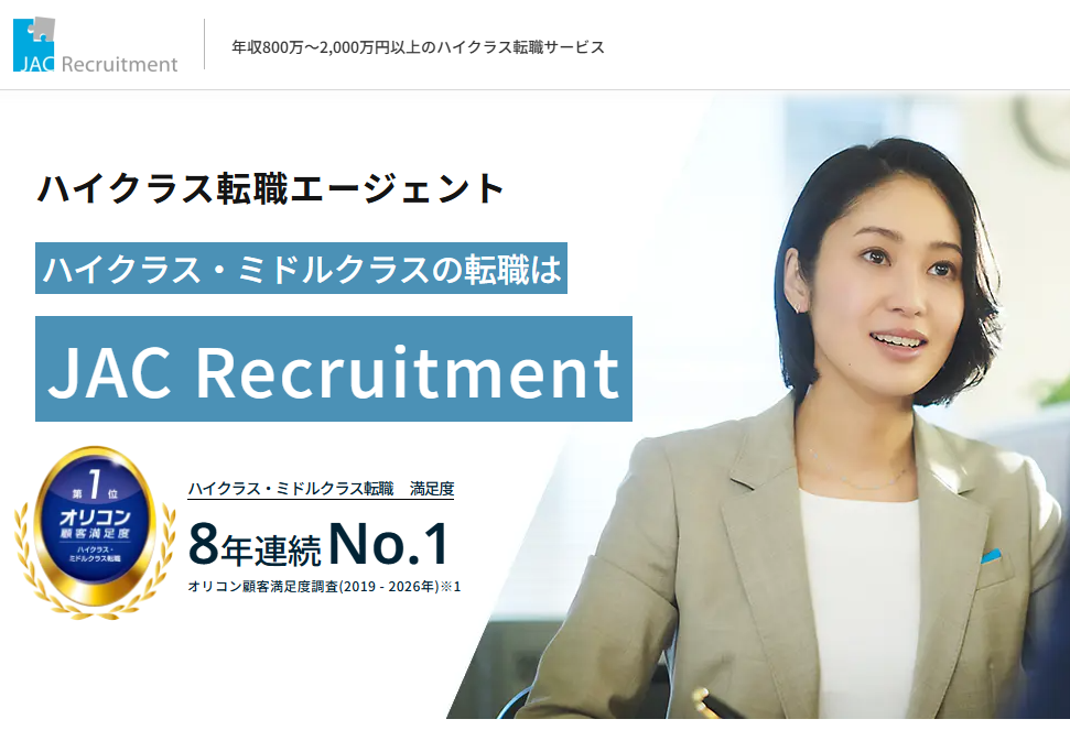 転職を考えるとき、「信頼できるエージェント選び」は欠かせません。その中でもJAC Recruitment(ジェイ エイ シー リクルートメント)は、管理職・専門職・ミドル〜ハイクラス向けに特化した転職エージェントとして高い評価を得ています。
